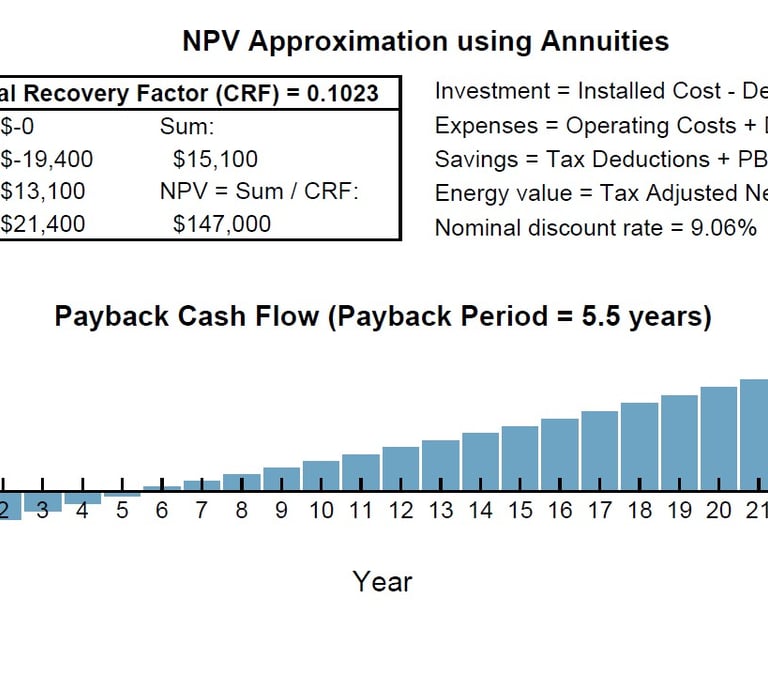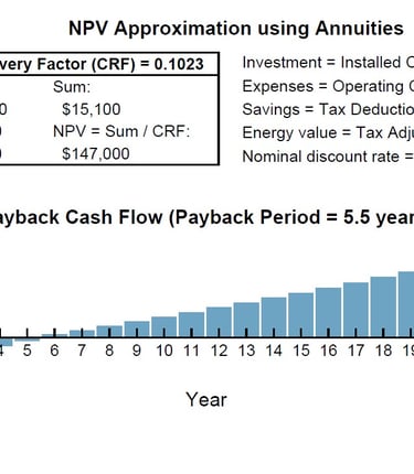 In conjunction with the data from energy modelling, project financials can be modelled with CAPEX, OPEX, incentives, taxes, equity and debt inputs. Output data such as IRR, payback, NPV, cashflow, ROI etc. can be studied with parametric analysis. Projection duration can be varied from 1 to 25 years.